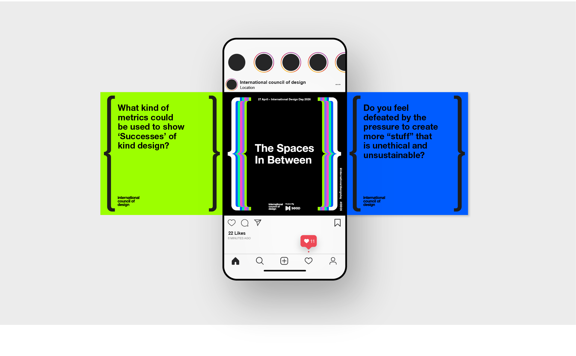 To facilitate engagement and uptake, we created[JC1] a range of Canva design files and Illustrator templates which participants can access via a full-packaged IDD2026 toolkit. Working with our original concepts, designers around the world are able to devise their own creative response to The Spaces in Between. Our visual design gives participants a blank canvas for expression, providing – quite literally – the space into which they can project their own interpretations of this year’s theme.